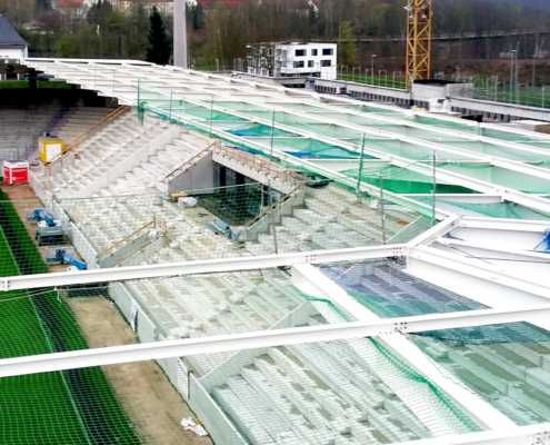 Bedachung Dachbegrünung dachterasse fc-aue firmenterasse Flughafendach Frankfurt am Main Fußballstadion Gründach Kalzip lebensraum metalldach metallisch münster Optigrün sana klinikum Münster stadion aue stadiondach Terminal 2 Werder Bedachungen